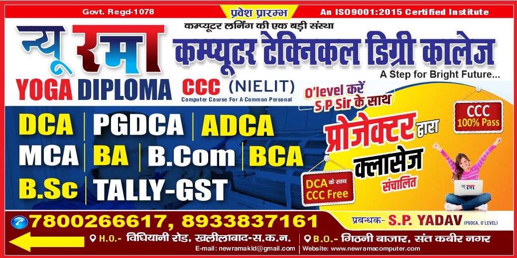 NEW RAMA COMPUTER is a trusted, top-rated offline computer training centre in Khalilabad . We are dedicated to delivering high-quality, job-oriented computer education close to you in Sahjanwa, Khalilabad , all at affordable course fees.